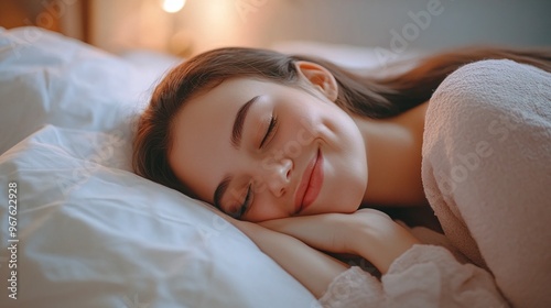 woman sleeping and snoring peacefully in bed at home enjoying the comfort of cozy blankets during a restful night