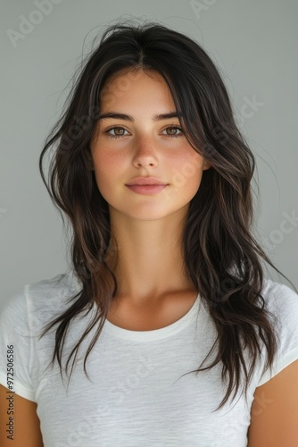 Woman wearing a blank white t-shirt with a mockup template for a graphic designer.
