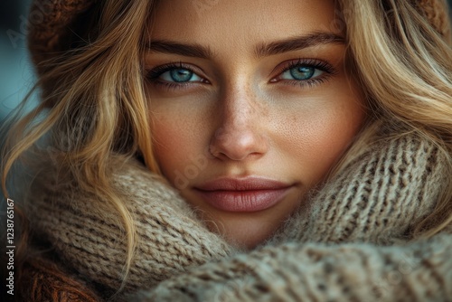 Woman, winter, eyes, portrait, scarf, cold, outdoors, beauty