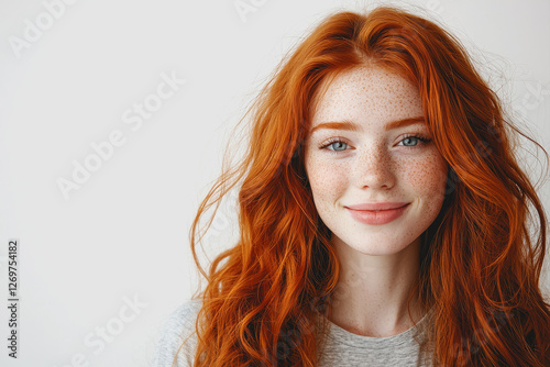 Woman with curly hair smiling while sitting on a couch in a cozy living room at home