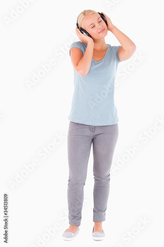 Woman with headphones having eyes closed