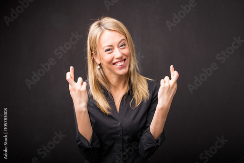 Woman with her fingers crossed