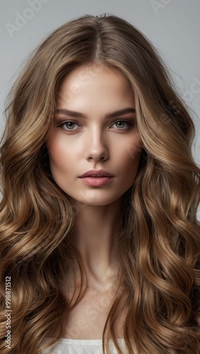 Woman with Long Wavy Hair and Neutral Expression
