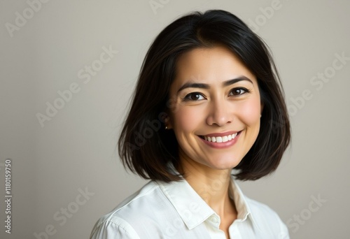 Woman with short hair and subtle expression