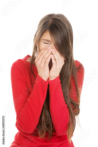 Woman with sinus pain.