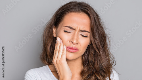 Woman with Tooth Pain: Suffering from dental discomfort, holding her cheek with a pained expression. Seeking relief from toothache or jaw pain. Time for dentist!