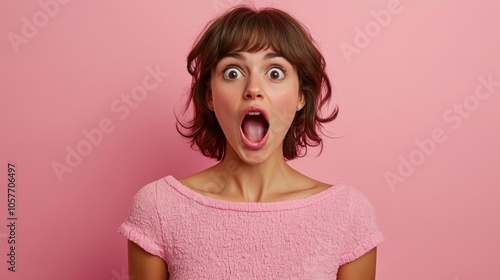 Woman with wide eyes and open mouth in surprise