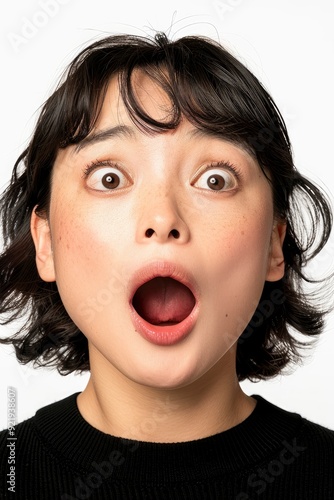 Wow! A Shocked Face Expression Of A Beautiful Asian Woman Isolated Against A White Background