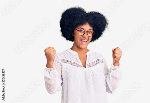 Young african american girl wearing casual clothes screaming proud, celebrating victory and success very excited with raised arms