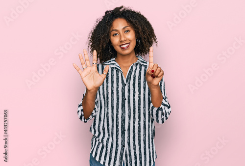 Young african american girl wearing casual clothes showing and pointing up with fingers number six while smiling confident and happy.