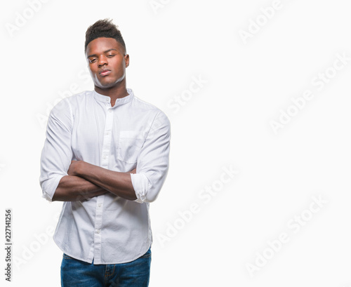 Young african american man over isolated background skeptic and nervous, disapproving expression on face with crossed arms. Negative person.