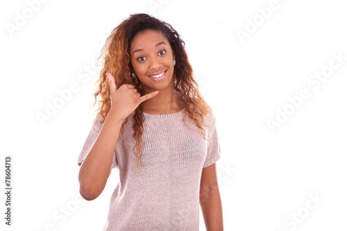 Young African American woman making a phone call on her smartpho