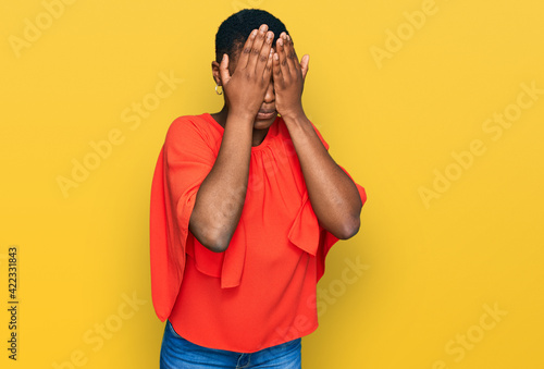 Young african american woman wearing casual clothes with sad expression covering face with hands while crying. depression concept.