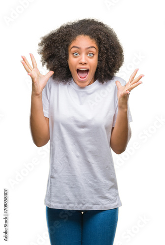 Young afro american woman over isolated background celebrating crazy and amazed for success with arms raised and open eyes screaming excited. Winner concept