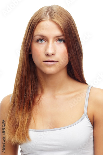Young and confident. Studio shot of a beautiful young woman isolated on white.