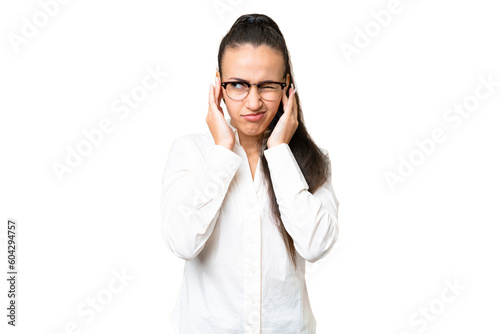 Young Arabian woman over isolated chroma key background frustrated and covering ears