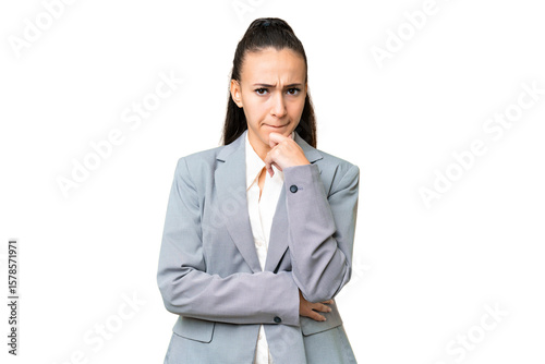 Young Arabian woman over isolated chroma key background having doubts and thinking