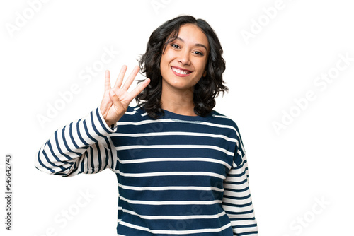 Young Argentinian woman over isolated background happy and counting four with fingers