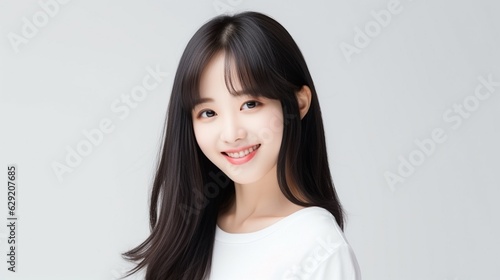 Young Asian beauty woman curly long hair with korean makeup style. Facial treatment, Cosmetology, plastic surgery