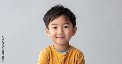 Young Asian boys in relaxed, casual clothing stand against a plain white background, showcasing their joyful innocence and individual styles.