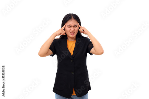 Young asian business woman suffering from head ache. Isolated on