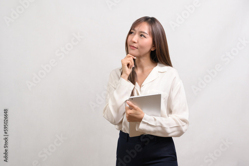 Young asian businesswoman using tablet over white background, technology concept
