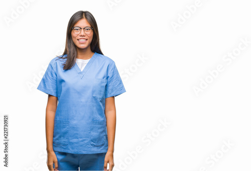 Young asian doctor woman over isolated background with a happy and cool smile on face. Lucky person.