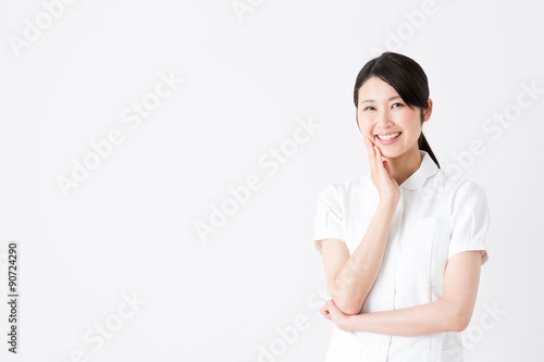 young asian nurse on white background