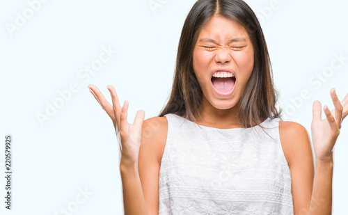 Young asian woman over isolated background celebrating mad and crazy for success with arms raised and closed eyes screaming excited. Winner concept