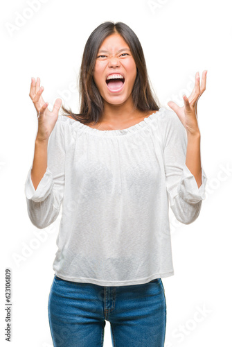 Young asian woman over isolated background crazy and mad shouting and yelling with aggressive expression and arms raised. Frustration concept.