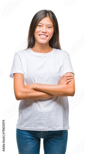 Young asian woman over isolated background happy face smiling with crossed arms looking at the camera. Positive person.