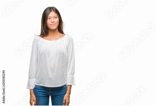 Young asian woman over isolated background smiling looking side and staring away thinking.