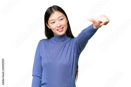 Young Asian woman over isolated chroma key background giving a thumbs up gesture