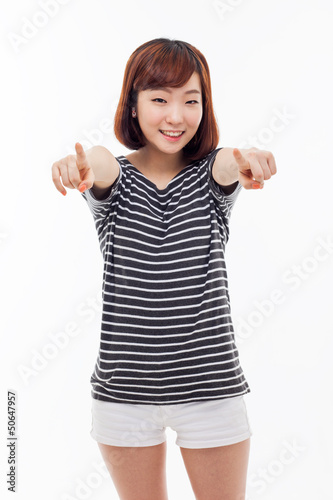 Young Asian woman pointing you