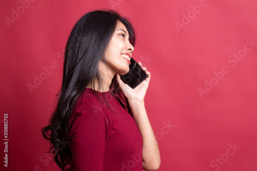 Young Asian woman talking with mobile phone.