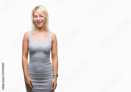 Young beautiful blonde woman over isolated background winking looking at the camera with sexy expression, cheerful and happy face.