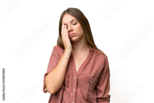 Young beautiful blonde woman over isolated background with headache