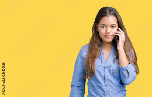 Young beautiful brunette business woman talking on smartphone over isolated background with a confident expression on smart face thinking serious