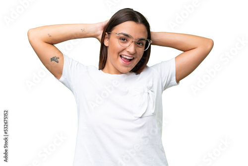 Young beautiful brunette woman over isolated background