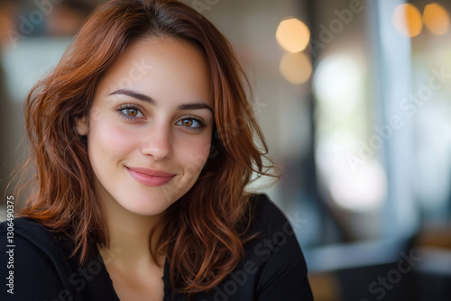young beautiful business woman sitting in office