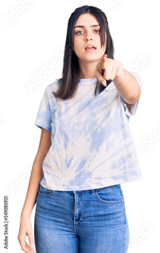 Young beautiful girl wearing casual t shirt pointing displeased and frustrated to the camera, angry and furious with you