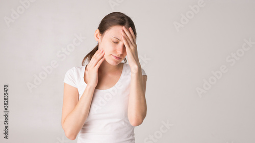Young beautiful woman having headache