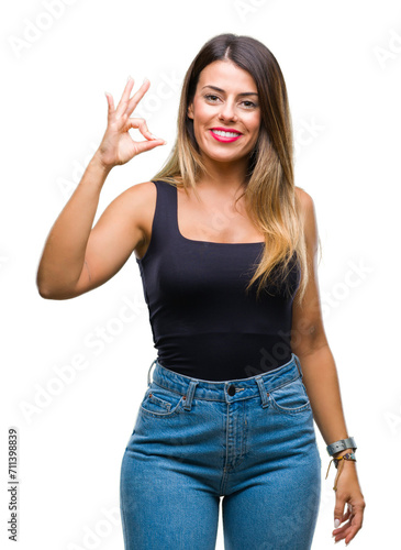 Young beautiful woman over isolated background smiling positive doing ok sign with hand and fingers. Successful expression.