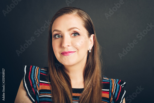 Young beautiful woman studio shot, pretty girl with bright make up