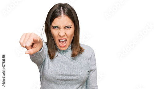 Young beautiful woman wearing casual turtleneck sweater pointing displeased and frustrated to the camera, angry and furious with you