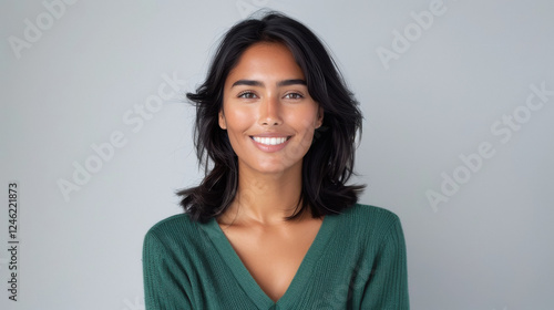 young beautiful woman wearing green sweater