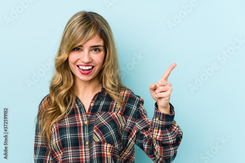 Young blonde caucasian woman having some great idea, concept of creativity.