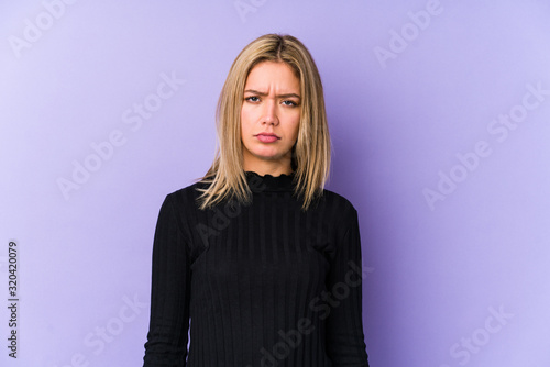 Young blonde caucasian woman isolated sad, serious face, feeling miserable and displeased.