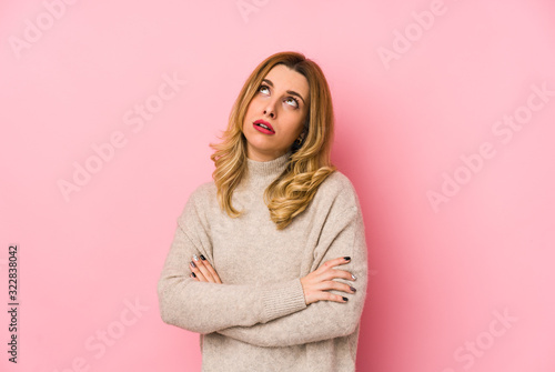 Young blonde cute woman wearing a sweater isolated tired of a repetitive task.