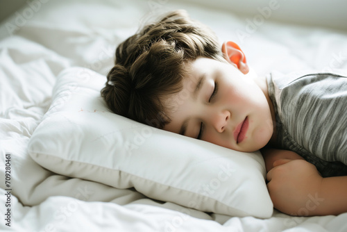 young boy sleeping on a pillow with his eyes closed